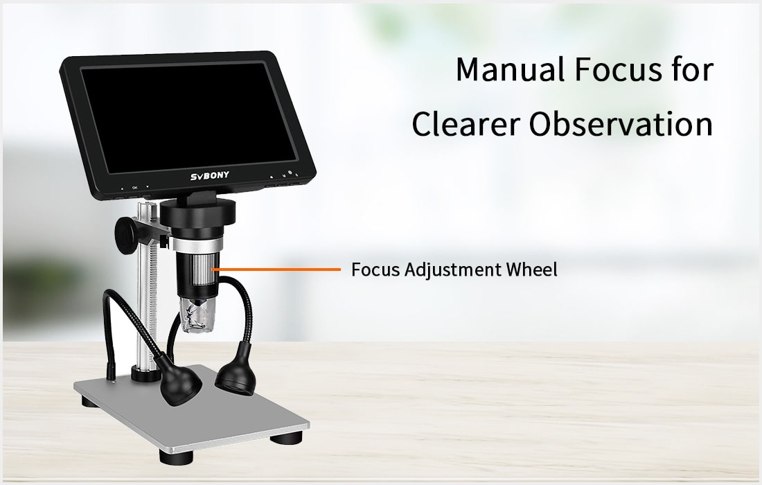 2. Phóng to và thu nhỏ liên tục 1x-1200x, giá đỡ có thể điều chỉnh, tự do điều chỉnh khoảng cách giữa ống kính và vật thể, lấy nét bằng tay để quan sát các chi tiết siêu nhỏ