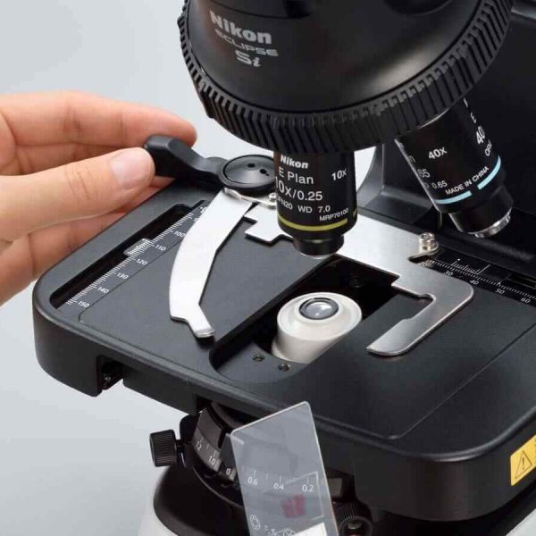 Kính hiển vi Nikon ECLIPSE Si 3 mắt được thiết kế để mang lại sự thoải mái và hiệu quả tối đa khi làm việc. Ống ngắm ba mắt nghiêng 45°, chia sáng 50:50, có cổng gắn camera. Hệ quang học vô cực CFI60 tạo hình ảnh sắc nét và độ phẳng cao trên toàn trường nhìn. Bàn mẫu cơ hai lớp, cao chỉ 13,5 cm, giúp thay lam thuận tiện. Nguồn sáng LED trắng tuổi thọ 60.000 giờ, duy trì ánh sáng ổn định trong mọi điều kiện quan sát.