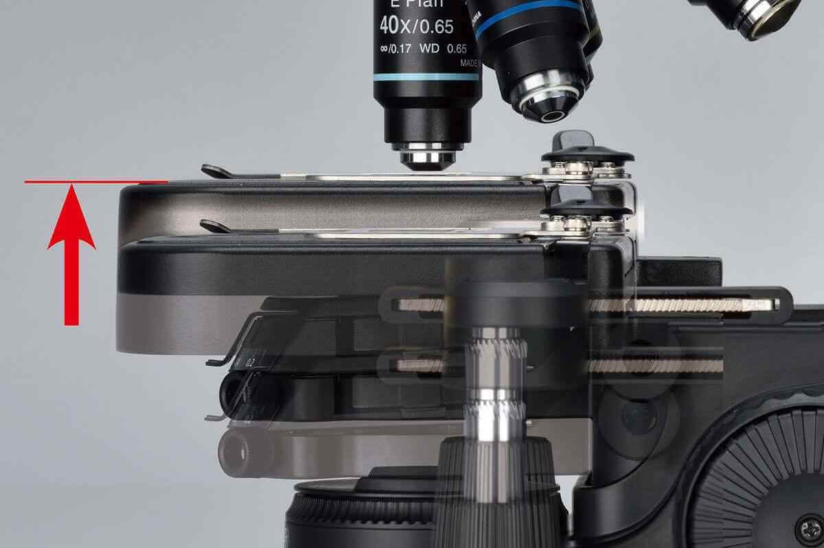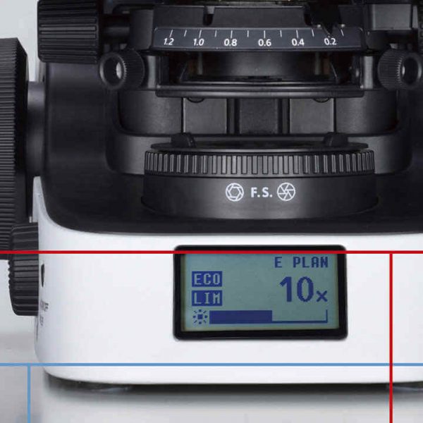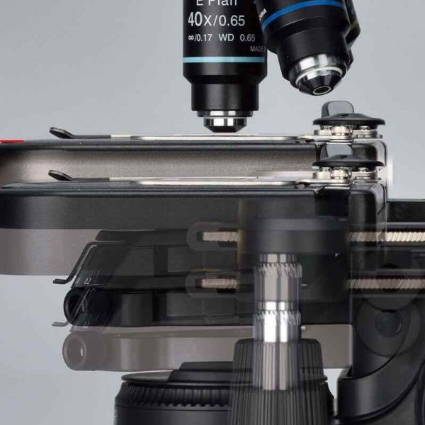 Chức năng ghi nhớ độ sáng tự động điều chỉnh phù hợp với từng vật kính. Bộ vật kính đa dạng gồm 4×, 10×, 40×, 60× và 100× dầu, đáp ứng nhiều nhu cầu khác nhau. Tụ quang Abbe NA 1.25 điều chỉnh được tâm và độ cao, giúp tối ưu độ sáng và độ tương phản hình ảnh. Cơ chế lấy nét đồng trục thô – tinh, bước điều chỉnh 2 µm, có chặn để ngăn va chạm vật kính và mẫu. Hỗ trợ nhiều phương pháp quan sát như sáng trường, tương phản pha, nền tối, phân cực, huỳnh quang truyền qua.