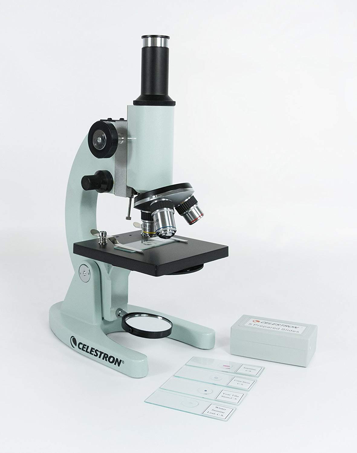 Kính hiển vi sinh học Celestron 44102-400x là một kính hiển vi thân kim loại chắc chắn. Hệ thống quang học được tráng phủ và các tính năng tiên tiến thường chỉ có trên các kính hiển vi có giá cao hơn. Với cả hai núm lấy nét thô và tinh, 3 vật kính, góc nghiêng có thể điều chỉnh từ 0° đến 60° đây chính là một kính hiển vi tuyệt vời dành cho bạn. Kính hiển vi sinh học Celestron 44102-400x đi kèm 5 tiêu bản mẫu vật giúp cho bạn có thể khám phá ngay sức mạnh của chiếc kính này ngay khi mở hộp.
