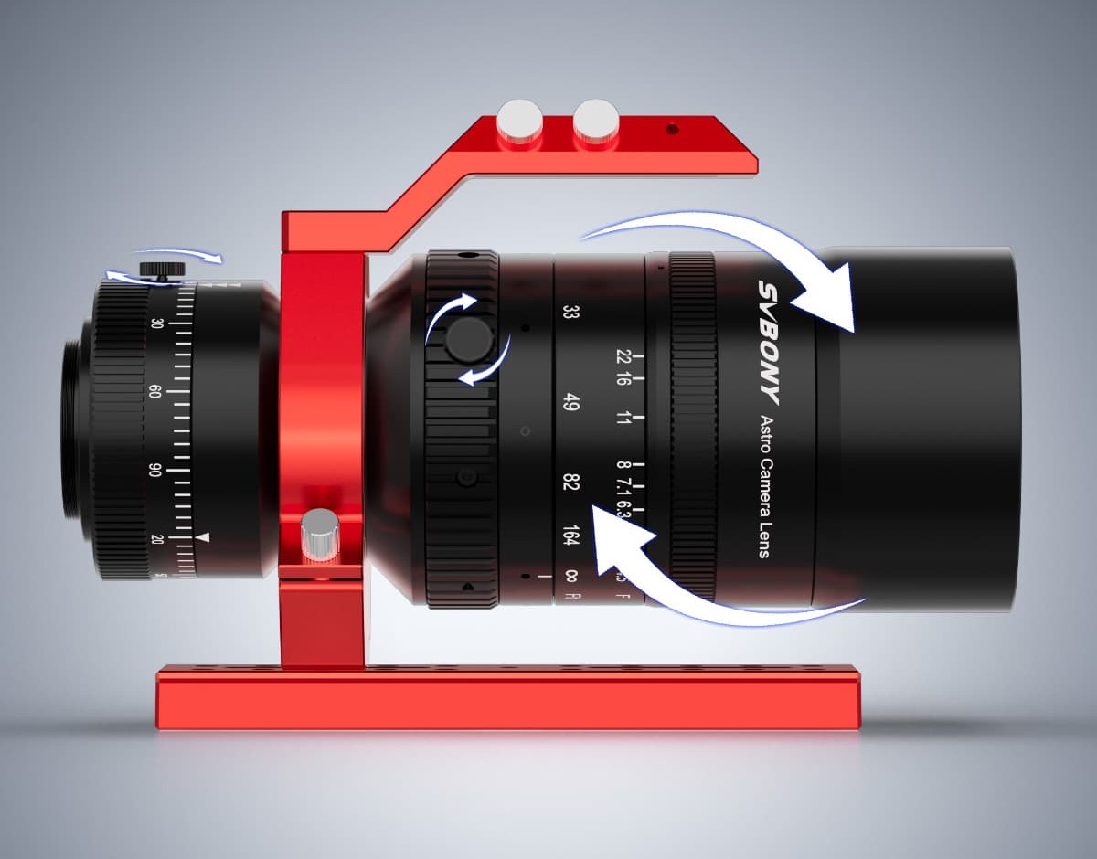 Cơ chế thay đổi khẩu từ f/4.5 đến f/22 linh hoạt cho phép điều chỉnh theo điều kiện chụp. Thiết kế nhẹ, bền và tích hợp EAF mount kit + rotator 360° khóa được giúp thao tác chính xác. SV555 phù hợp cả với camera mirrorless, DSLR lẫn camera astro qua ren M48×0.75 và vòng lọc M72 tiêu chuẩn, mang đến trải nghiệm chụp ảnh thiên văn hiệu suất cao trong một ống kính all-in-one